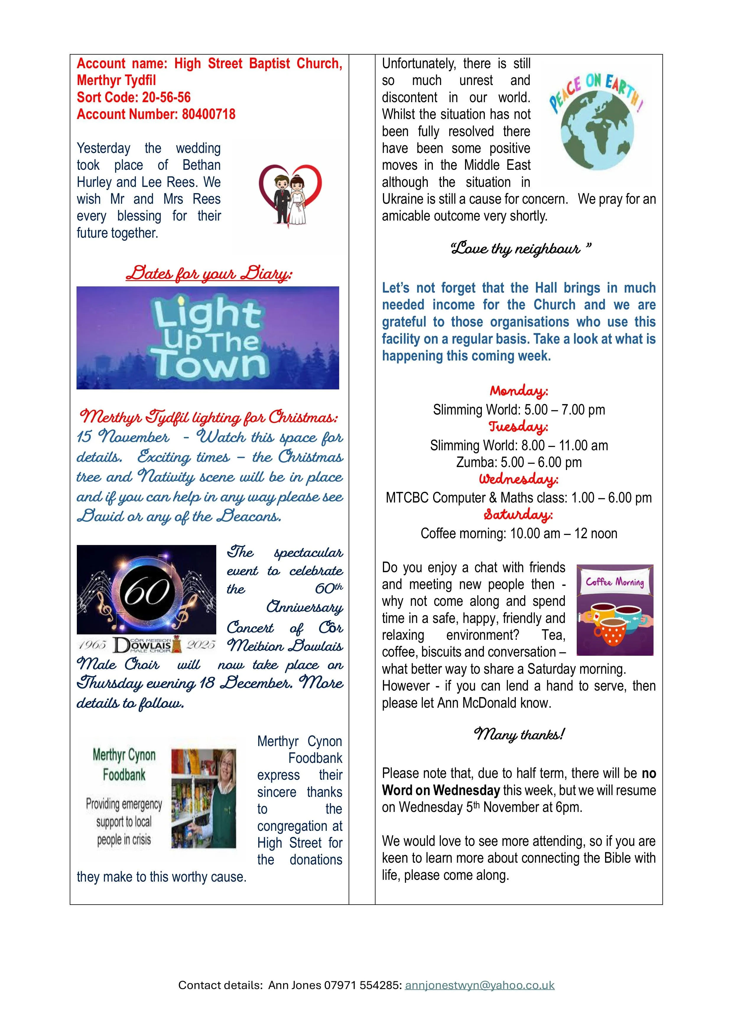 Contact us for information, help or support, or to enquire about baptisms, weddings or funerals. We’re here to help.